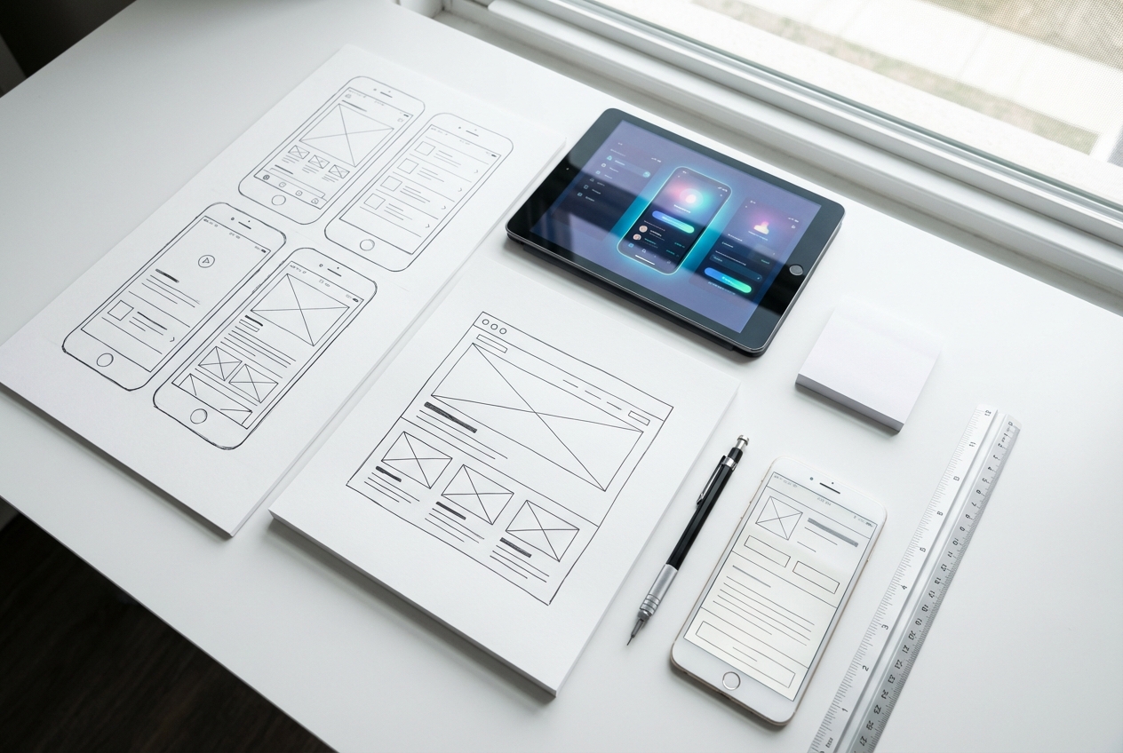 Structure comes before style. We sketch out flows and layouts, get alignment on the bones before adding the skin.
