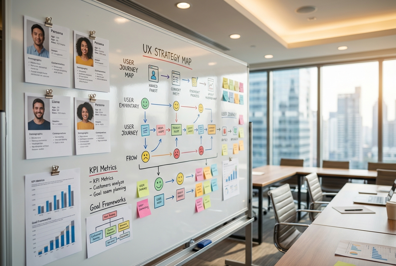 We get under the skin of your business. Goals, constraints, competitors, and users — we map it all before touching a design tool.